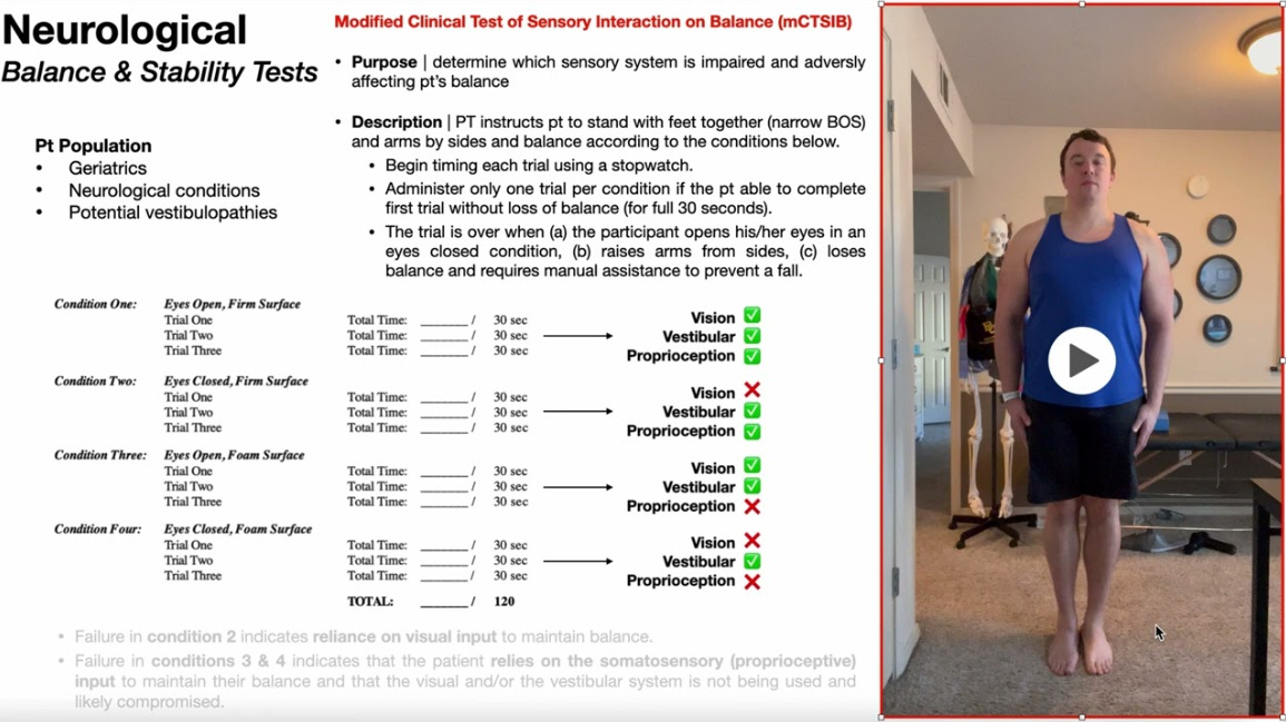 Consider this common scenario: a 62-year-old male presents with persistent unsteadiness. He reports dizziness on unstable surfaces when moving his head and looking up—classic signs of vestibular dysfunction that point toward a dynamic, multi-faceted problem. You need answers, so you turn to the balance testing you learned in school: the Modified Clinical Test of Sensory Interaction on Balance (mCTSIB).