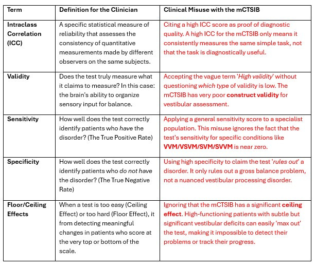 Proponents of the mCTSIB often rest their arguments on what appears to be strong psychometric data. Before we dissect the specific numbers, we must establish clear definitions for these terms and how clinicians often misuse them.