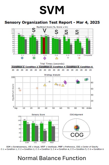 My patient, Pete, a former instrument-rated pilot, provided a unique opportunity to explore these parallels in depth. His understanding of flight dynamics and the critical difference between visual and instrument flight proved invaluable in his rehabilitation journey. Pete and I spoke yesterday, and he has permitted me to share his test results with you - thank you, Pete.